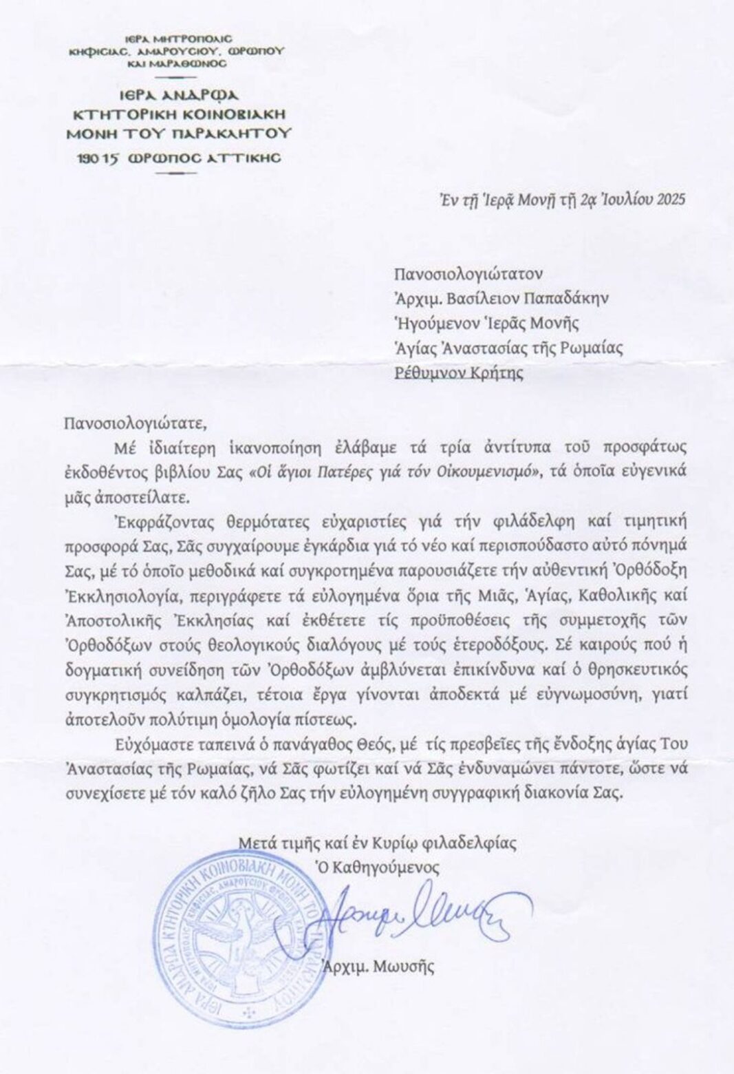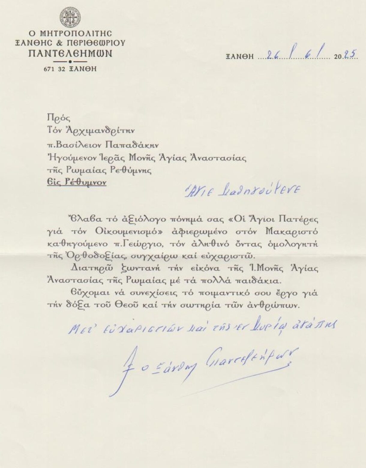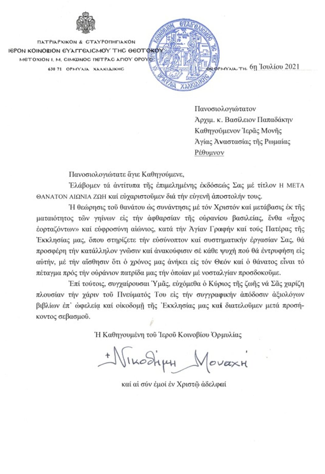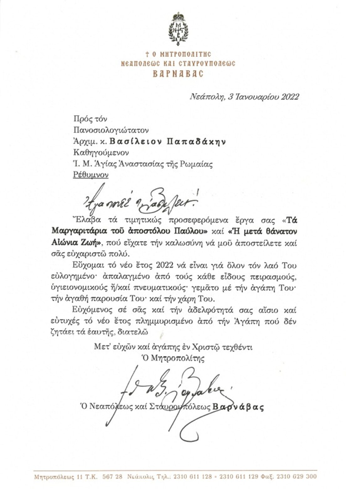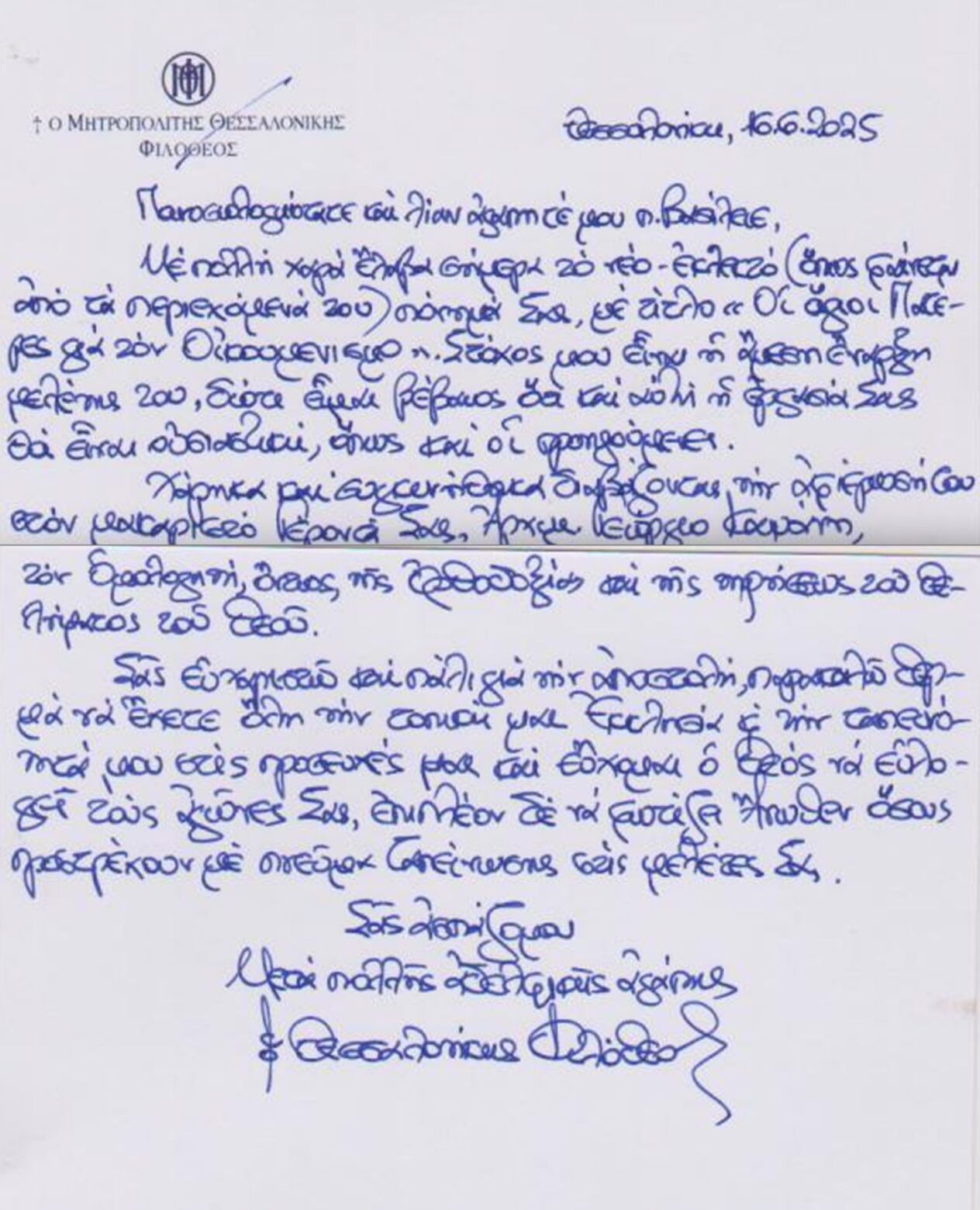Εὐχαριστήριες Ἐπιστολές