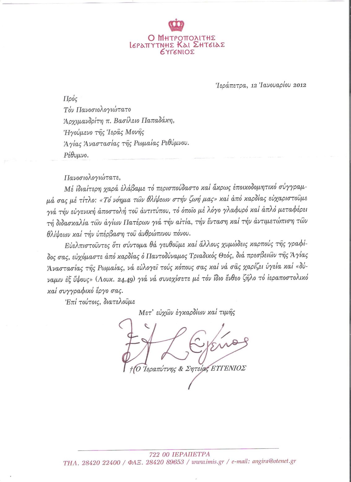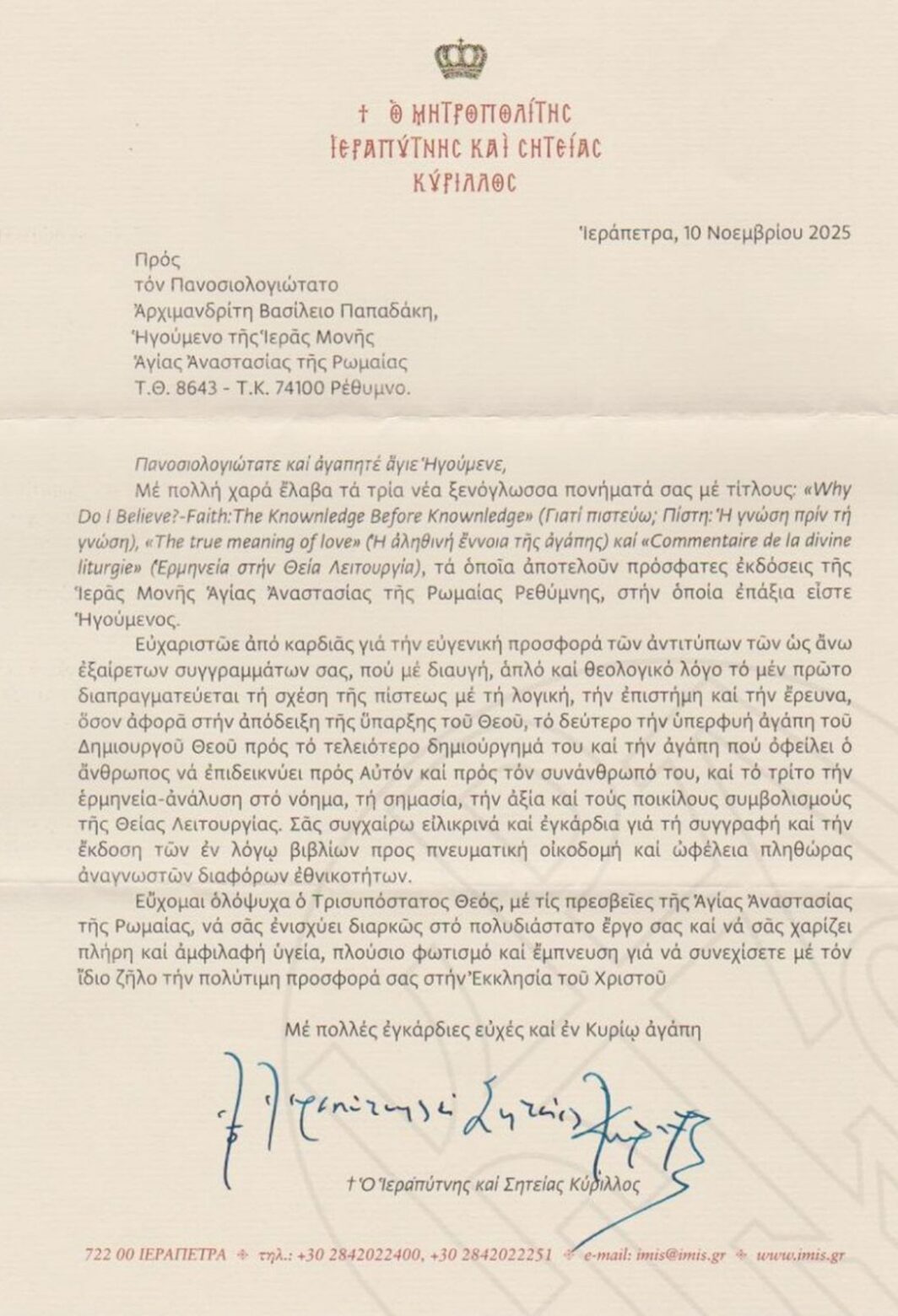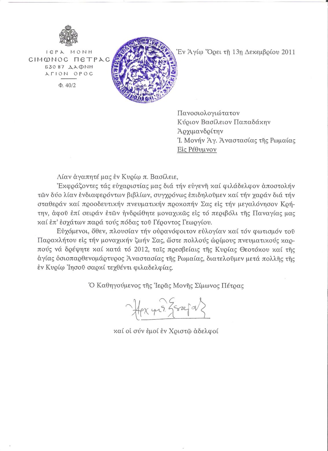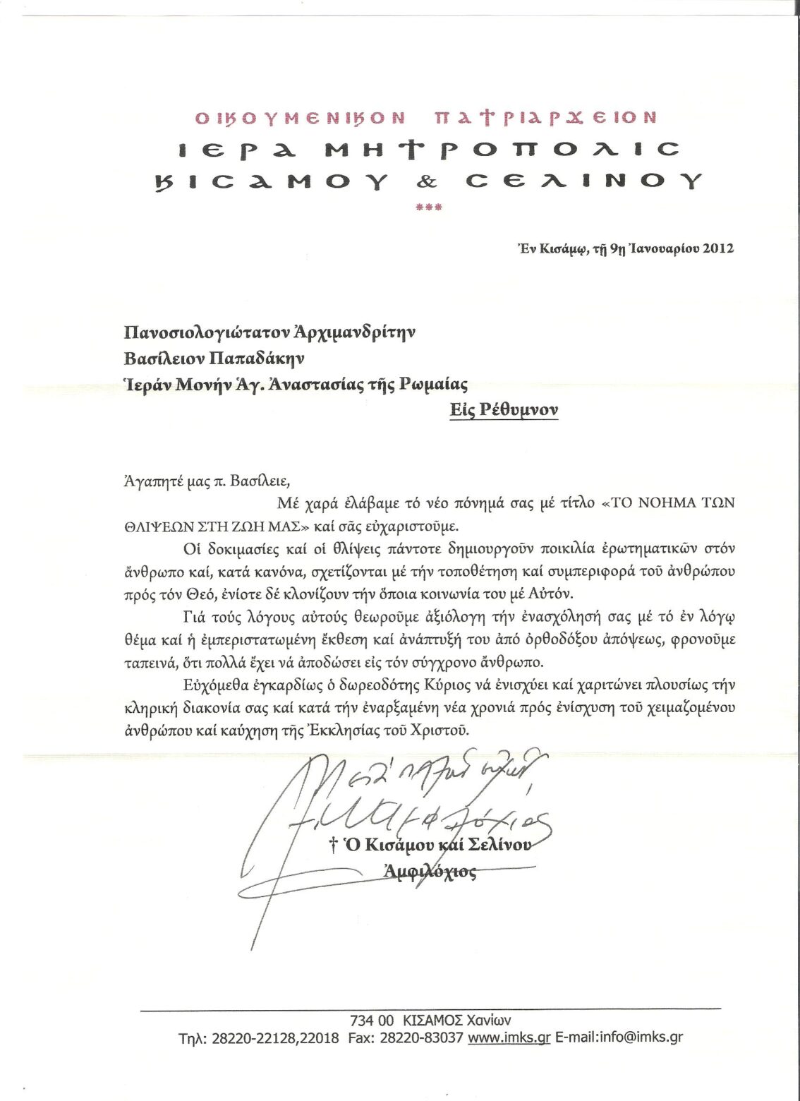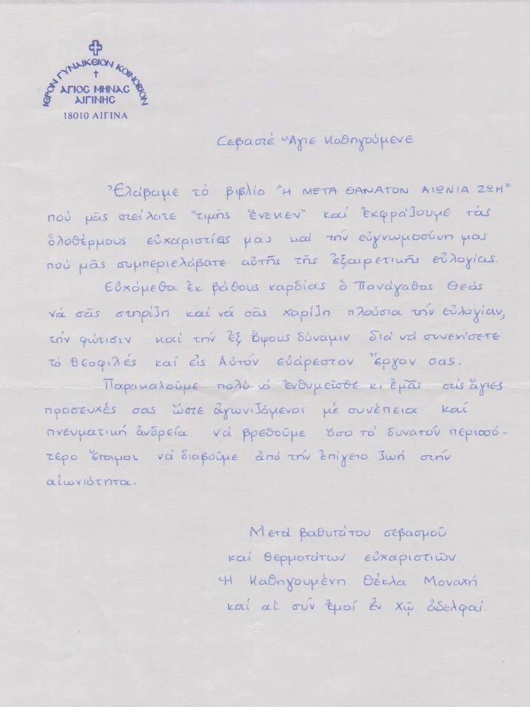 ΕΥΧΑΡΙΣΤΗΡΙΕΣ ΕΠΙΣΤΟΛΕΣ