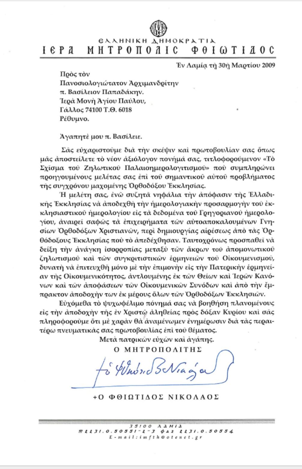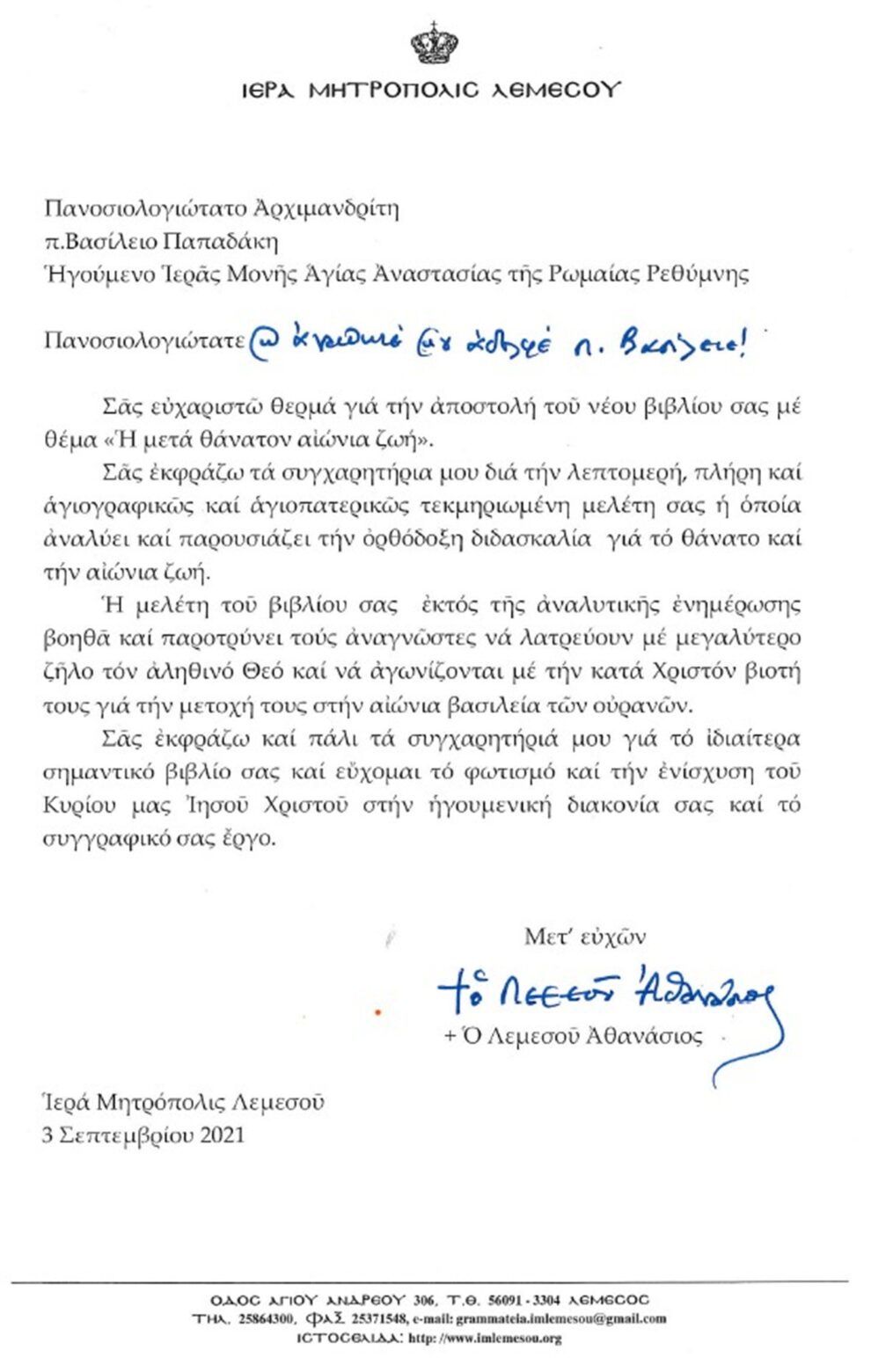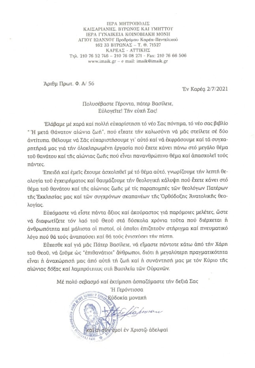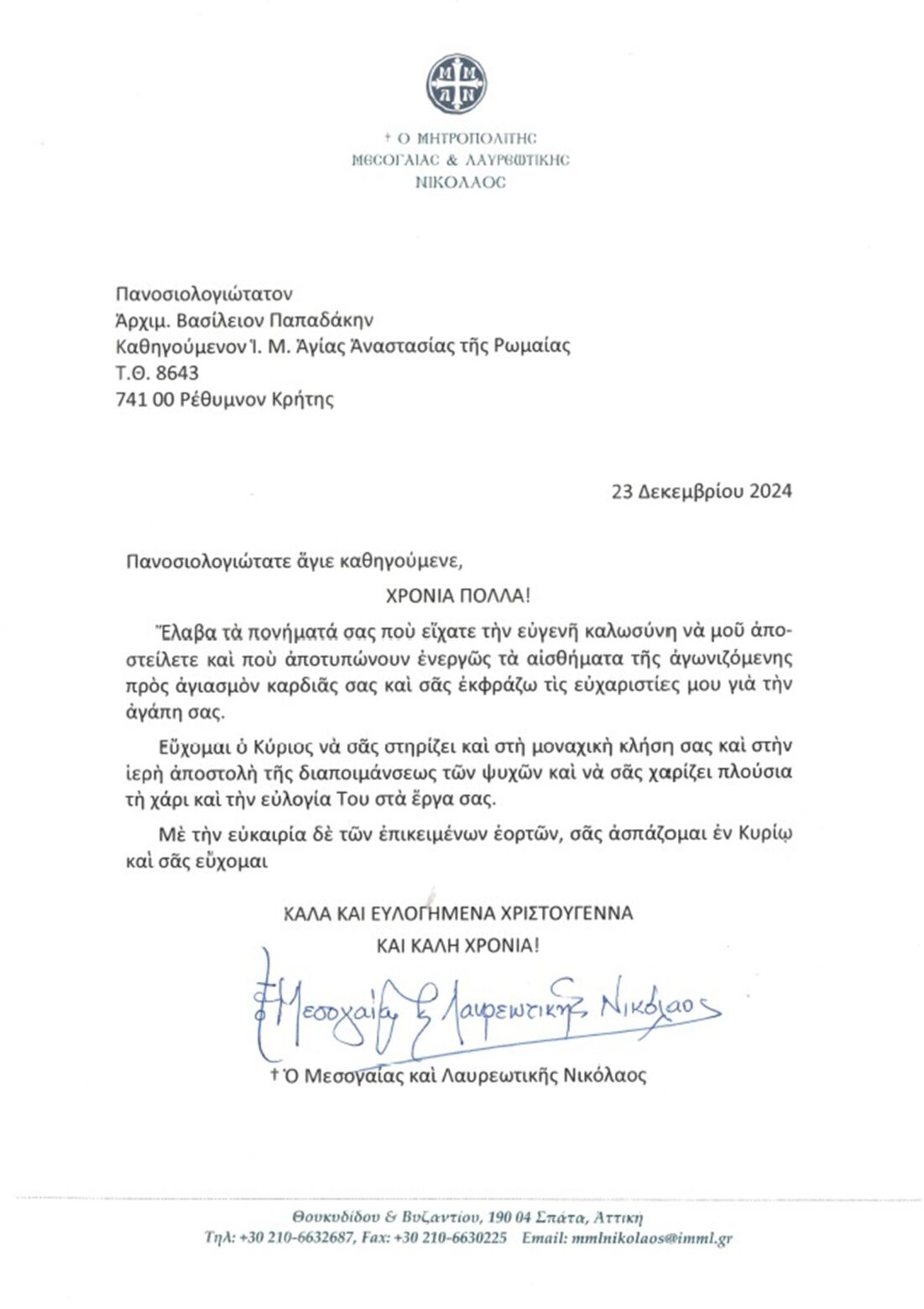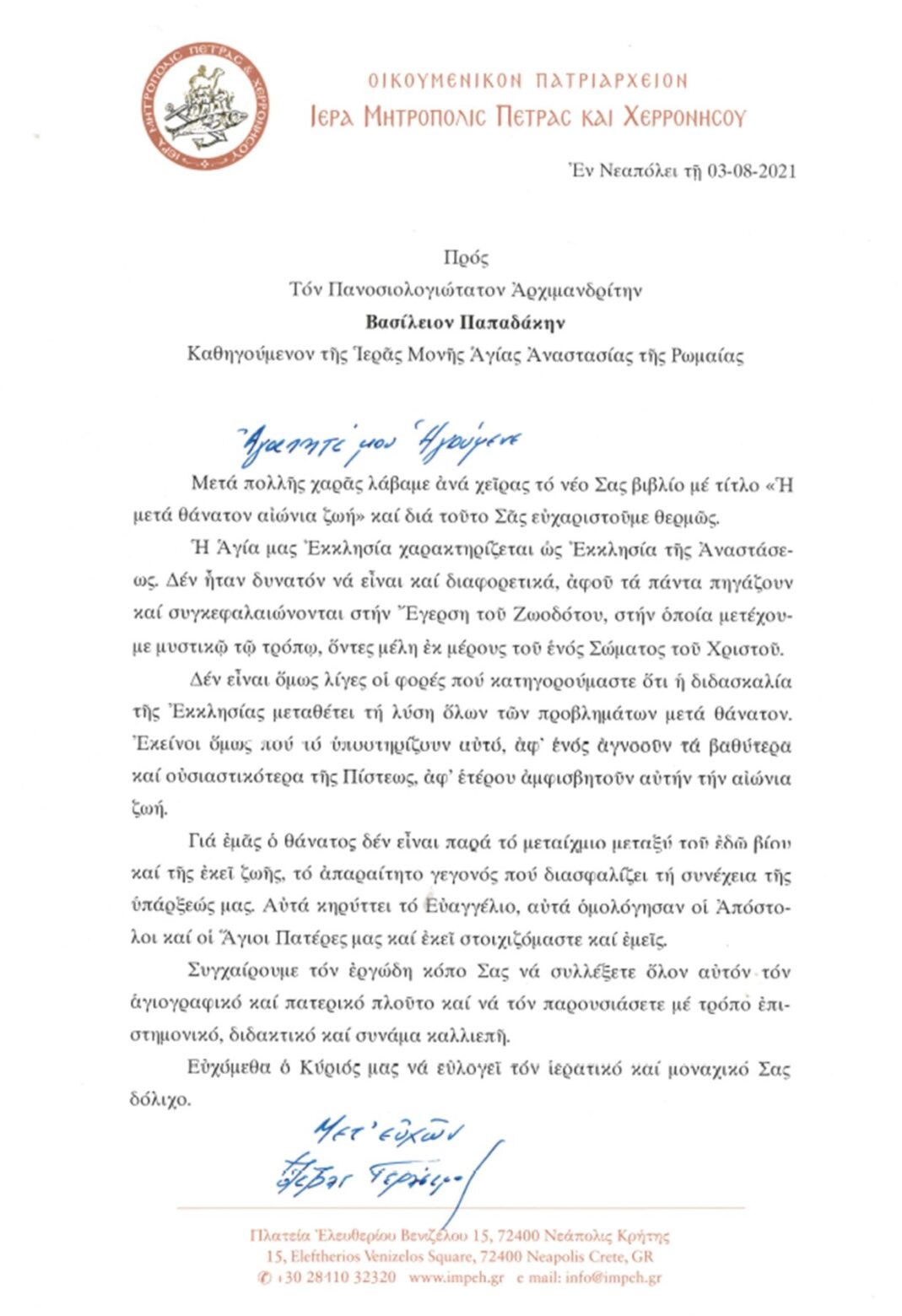 ΕΥΧΑΡΙΣΤΗΡΙΕΣ ΕΠΙΣΤΟΛΕΣ