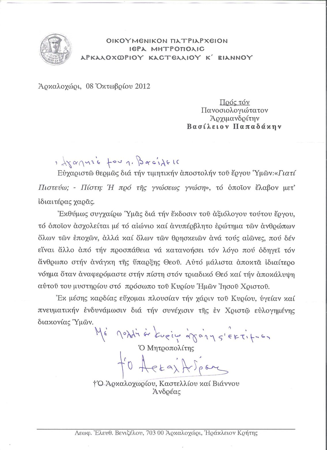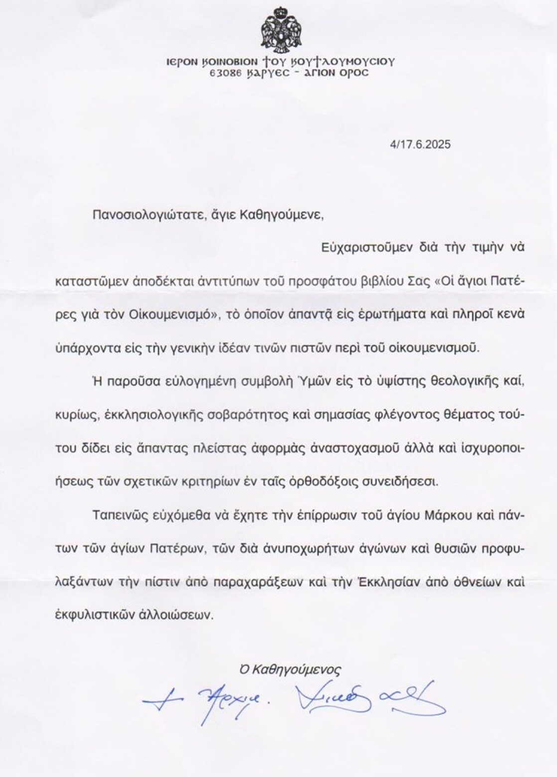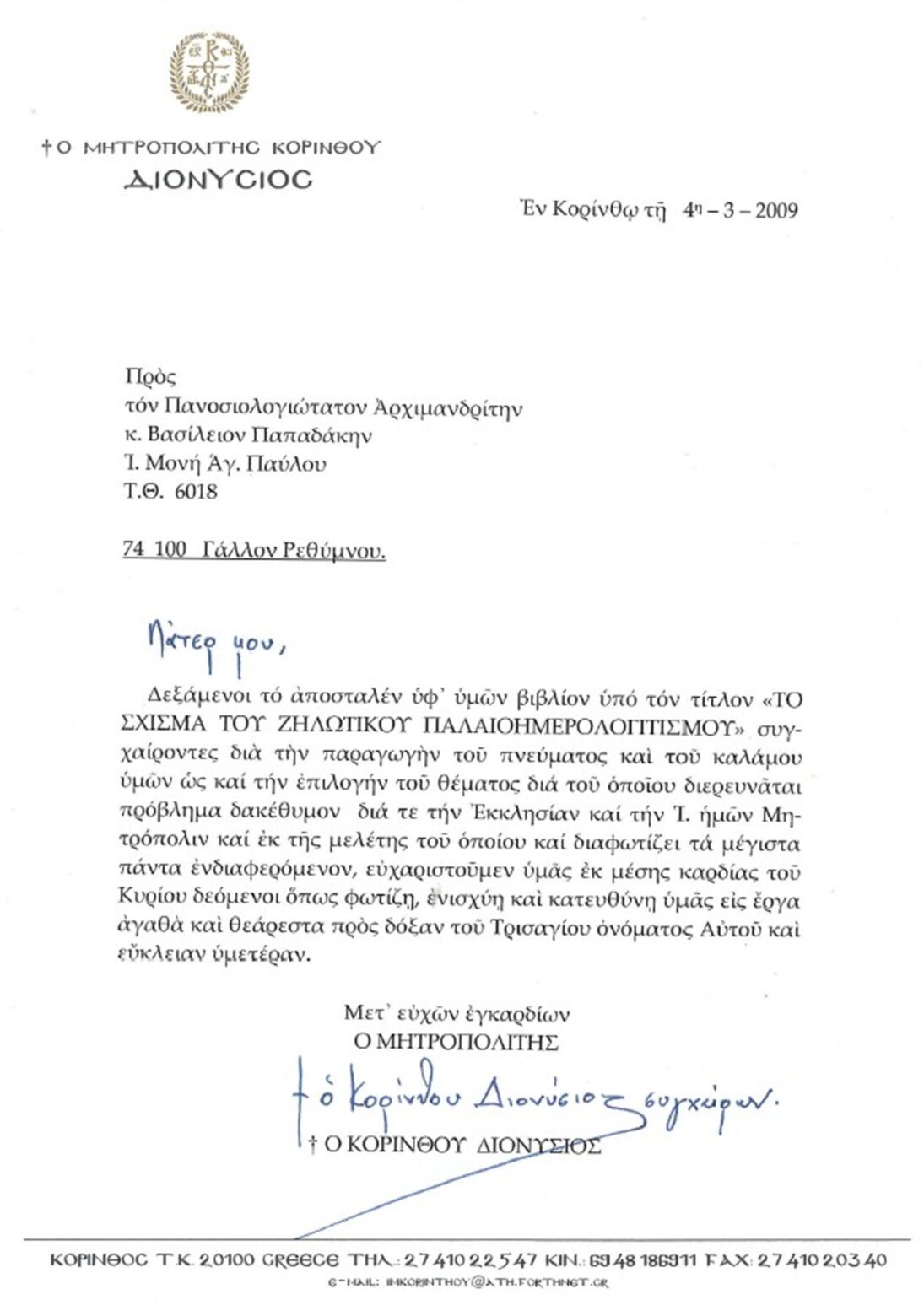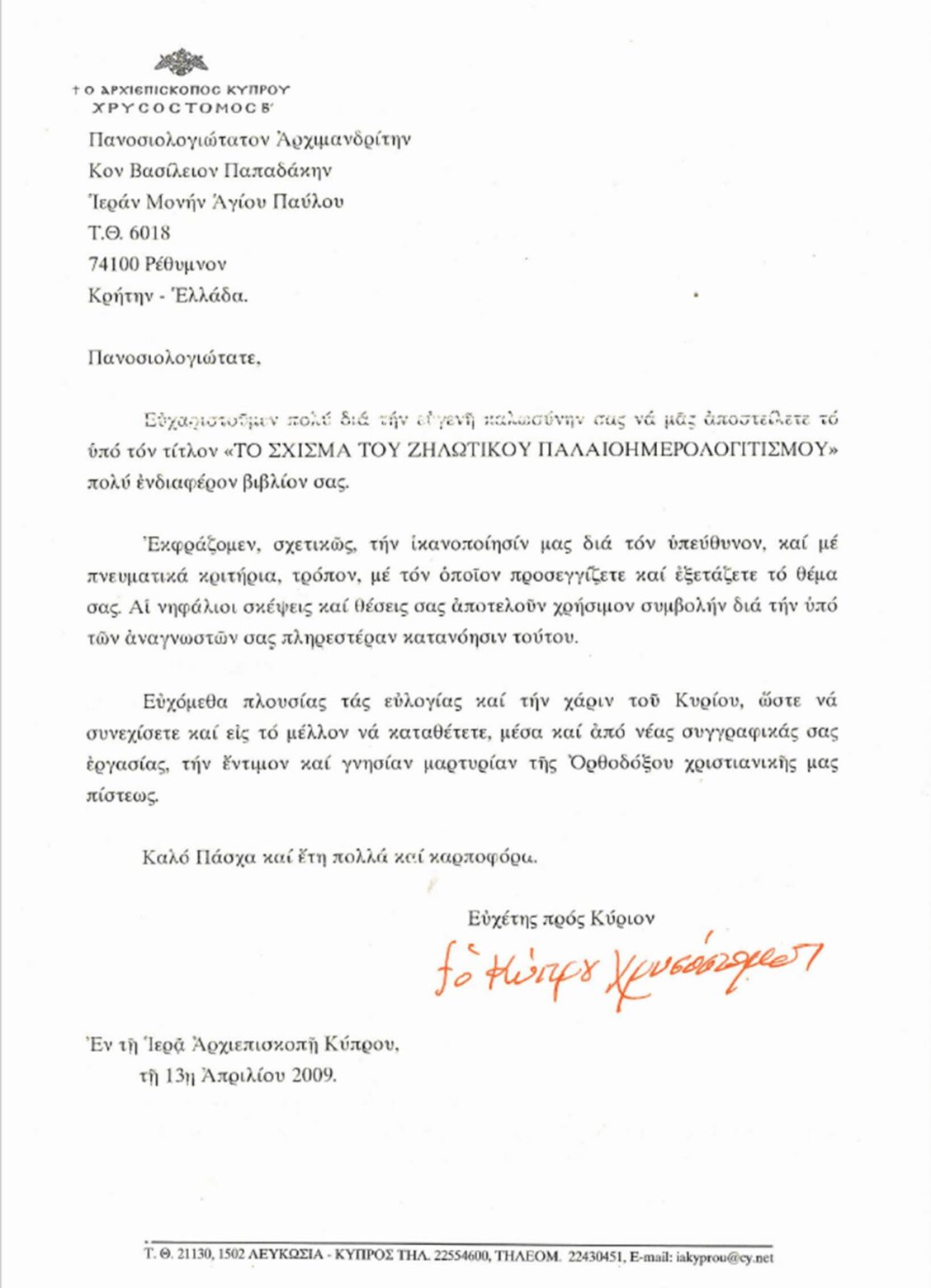 ΕΥΧΑΡΙΣΤΗΡΙΕΣ ΕΠΙΣΤΟΛΕΣ