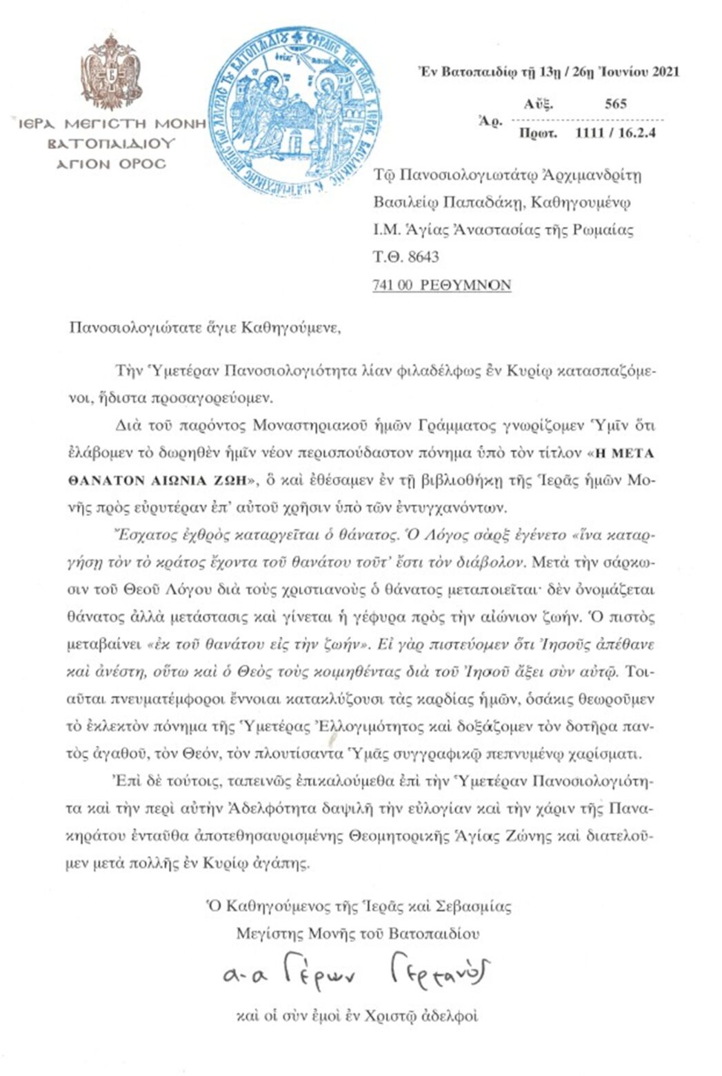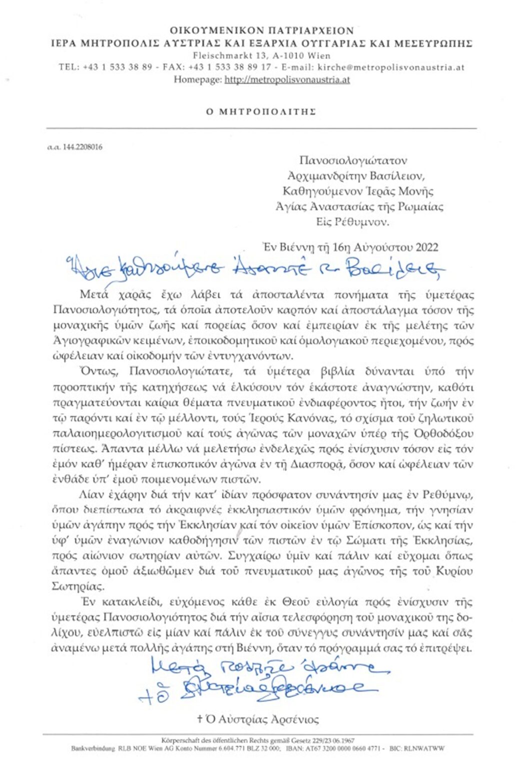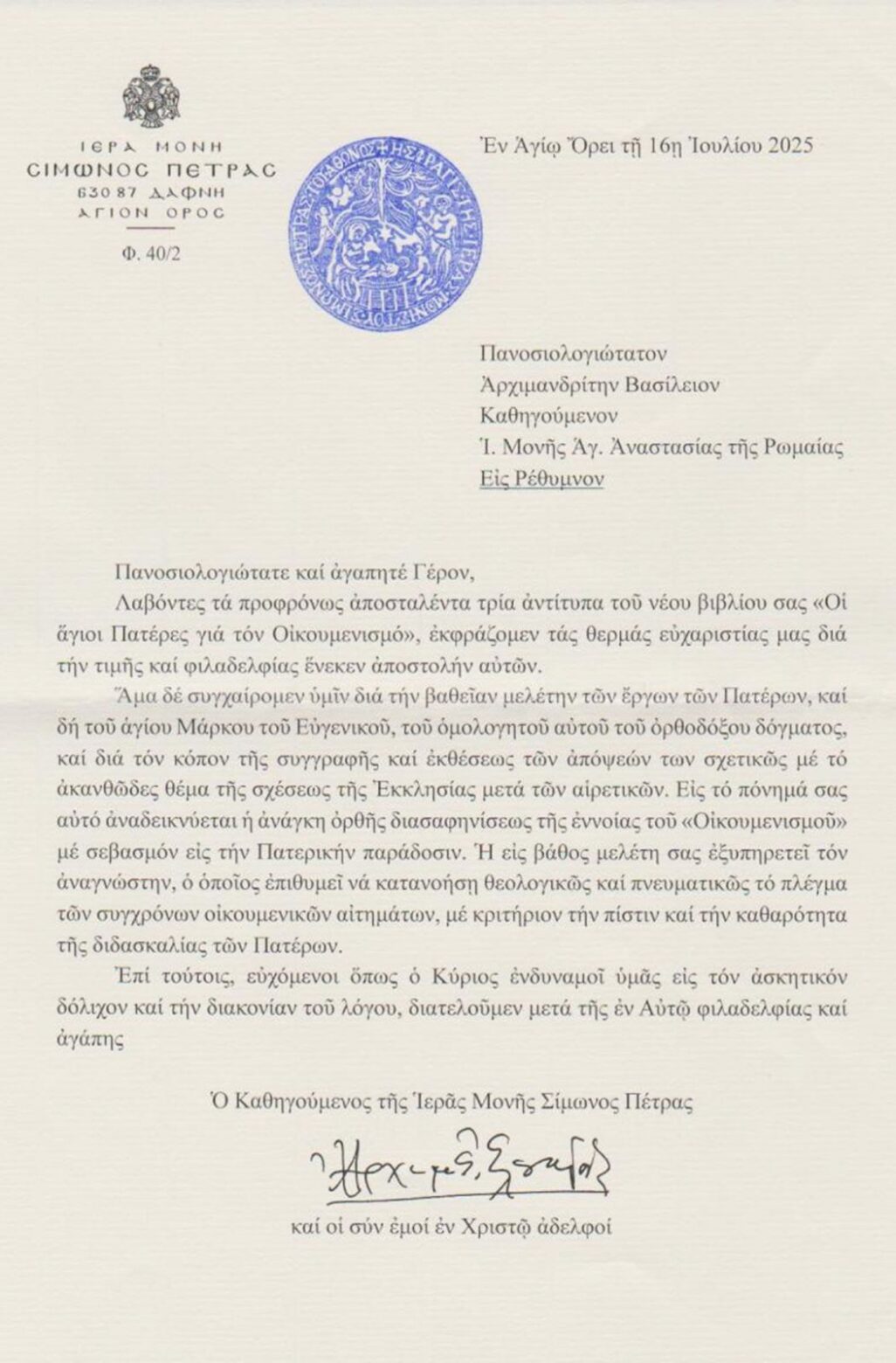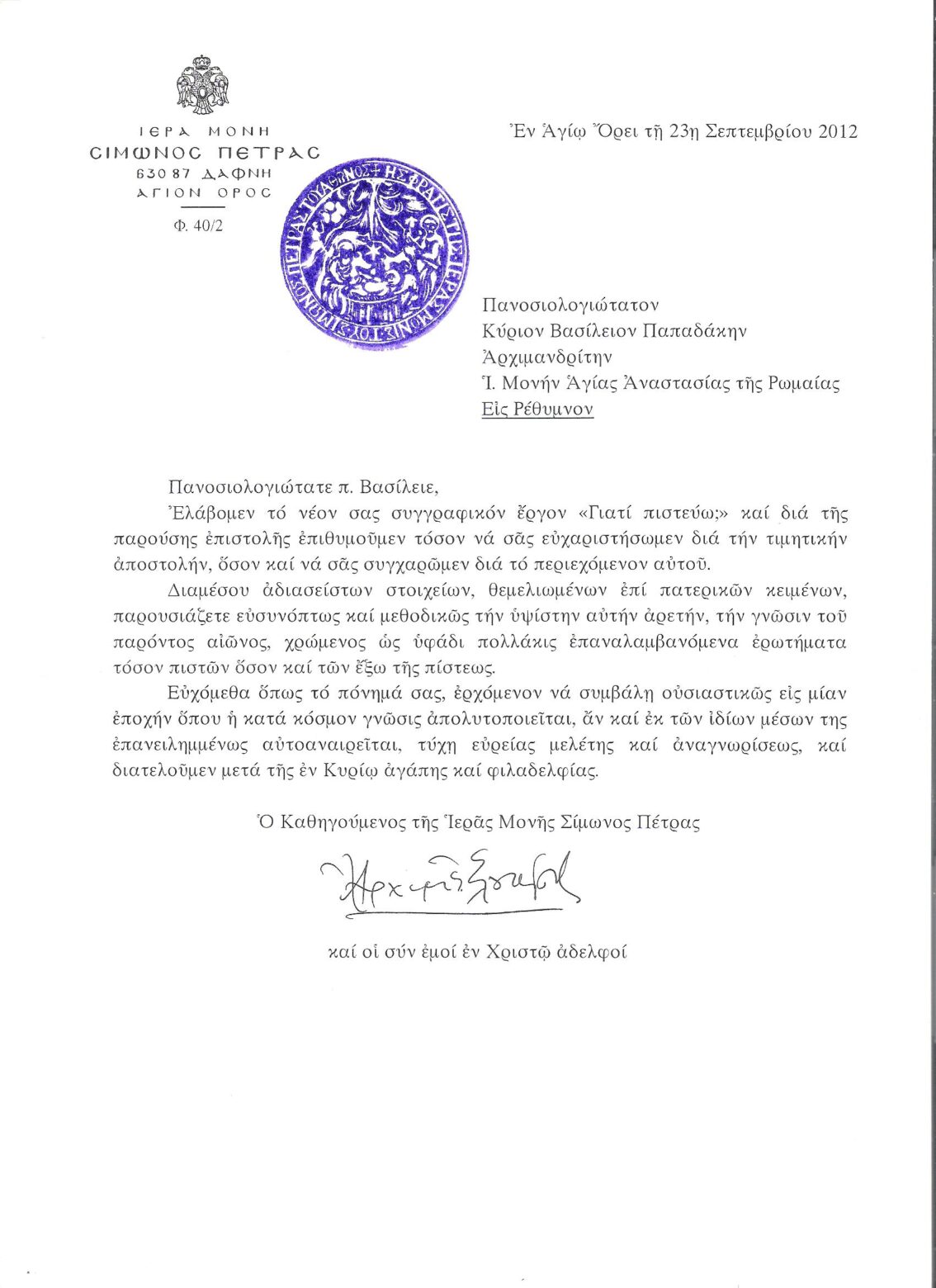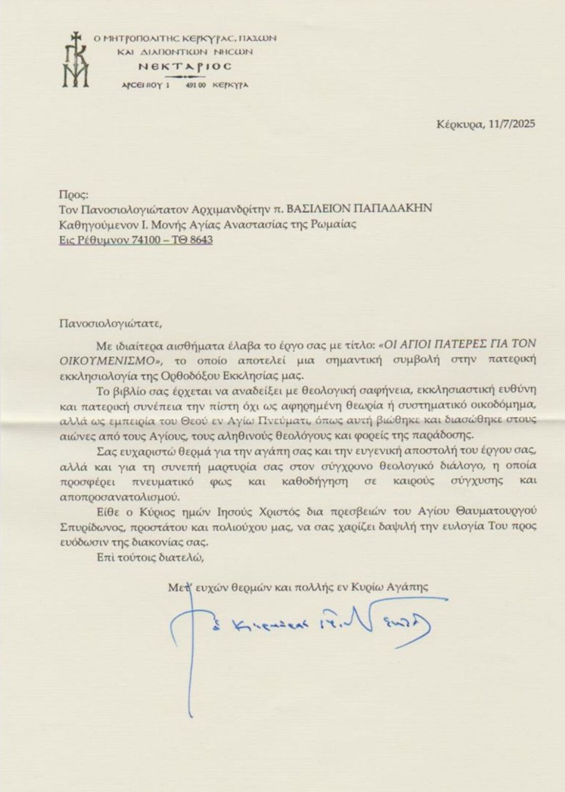 ΕΥΧΑΡΙΣΤΗΡΙΕΣ ΕΠΙΣΤΟΛΕΣ