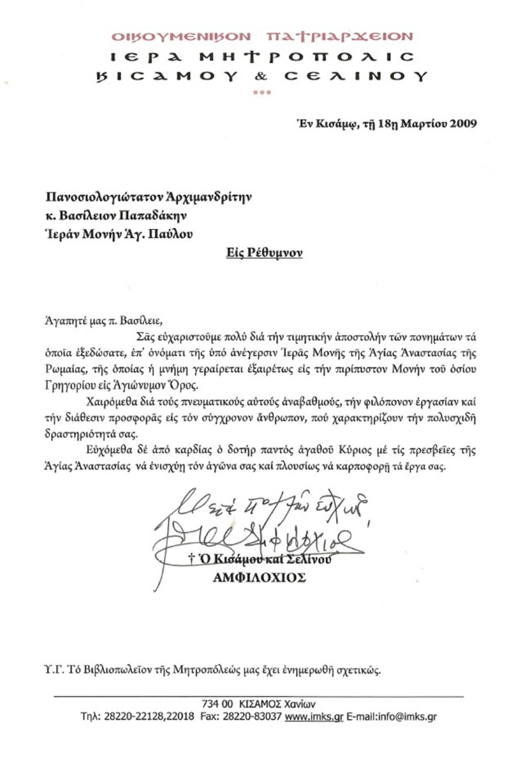 Ἱερά Μητρόπολις Ρεθύμνης