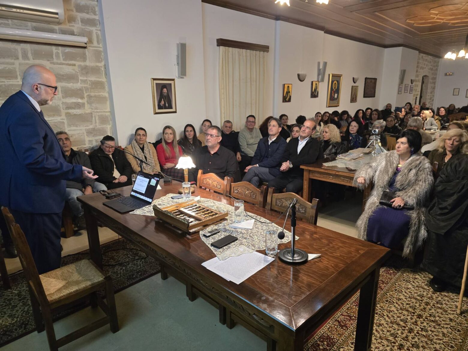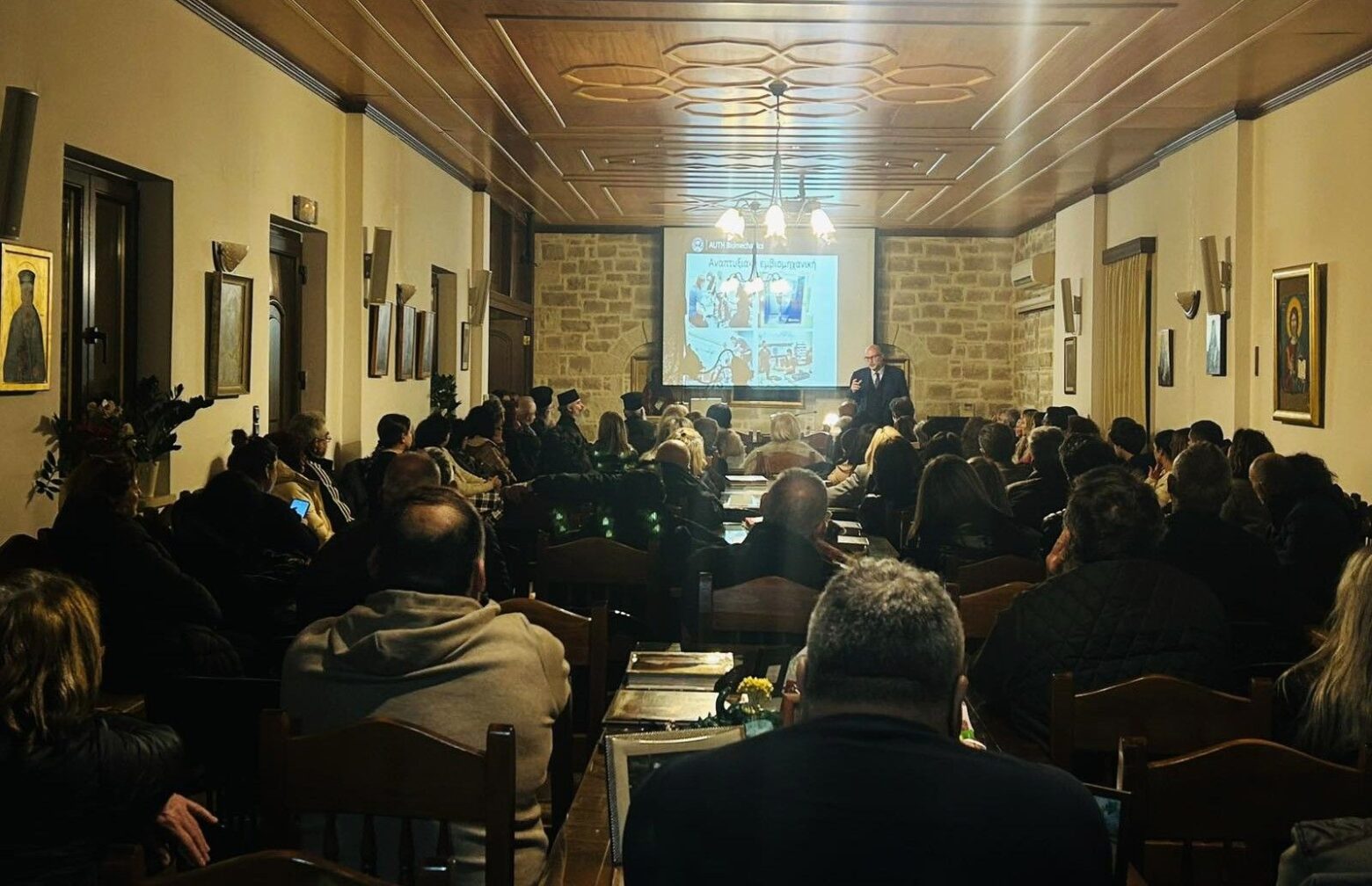 • Στήν συνέχεια, τό Σάββατο ἀπόγευμα, στίς αἴθουσες τῆς Μονῆς γίνεται Ὁμιλία πνευματικοῦ καί θεολογικοῦ περιεχομένου ἀπό τίς 7.00 ἕως τίς 8.30